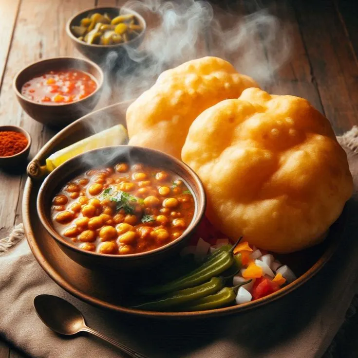 Soft, fluffy Bhaturas paired with spicy, tangy Chole — a classic North Indian dish that never fails.