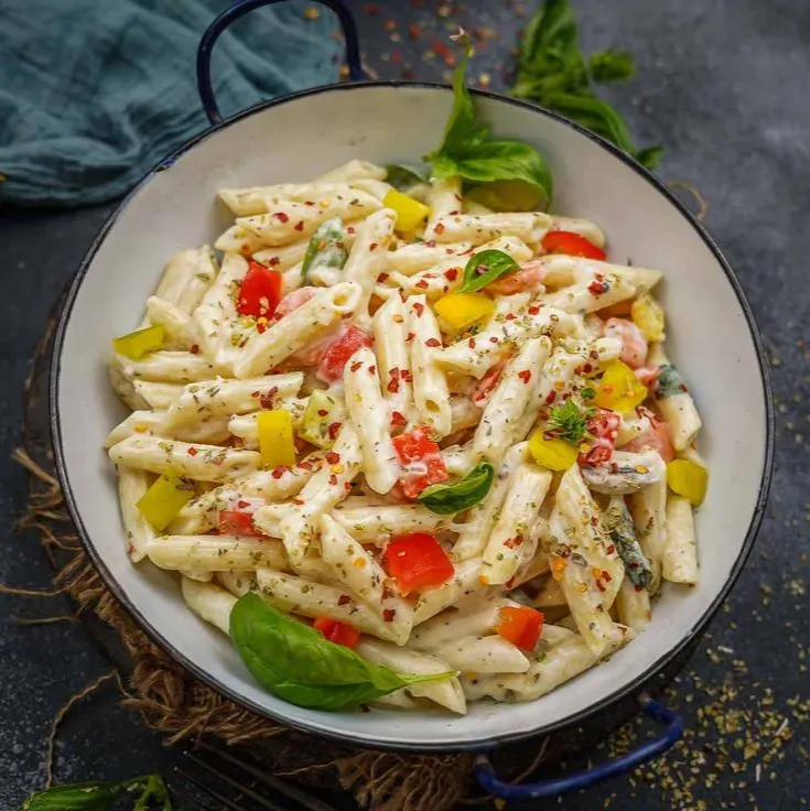 ndulge in the smooth, velvety taste of our White Sauce Pasta — a creamy delight that melts in the mouth .
