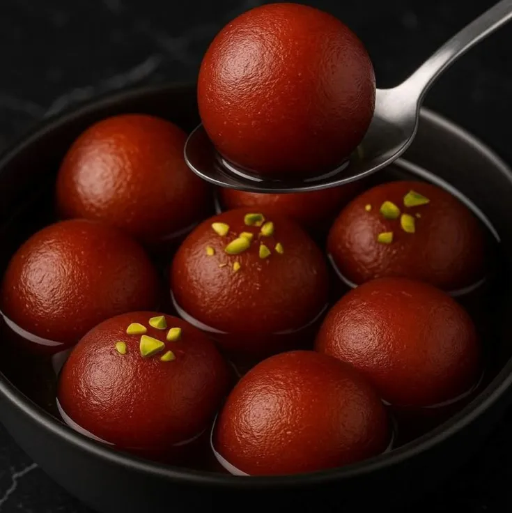 Soft, juicy, and soaked in rich saffron-infused syrup — our Gulab Jamun is the timeless Indian dessert.